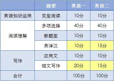 考研英语分为英语一和英语二,英语一考研试题分三部分,共52题,包括英语知识运用、阅读理解和写作(英语知识运用10分;阅读理解60分;写作30分)。